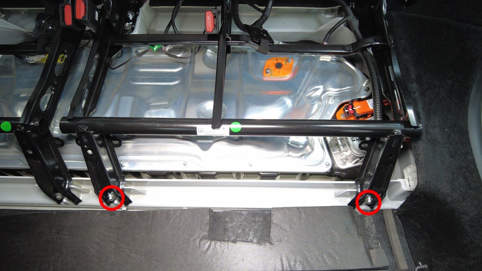 拆下并弃用将第二排左侧座椅框架固定到车身的螺栓(5 个)。