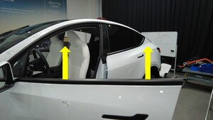 - 打开左前车门,完全降下左前车窗。