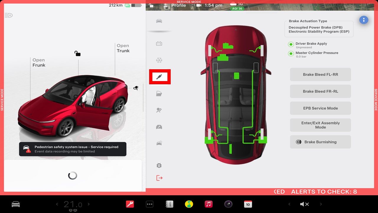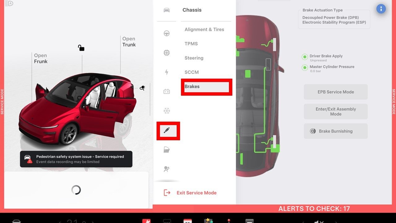 Access the chassis system routines using the vehicle UI. Select Chassis > Brakes.