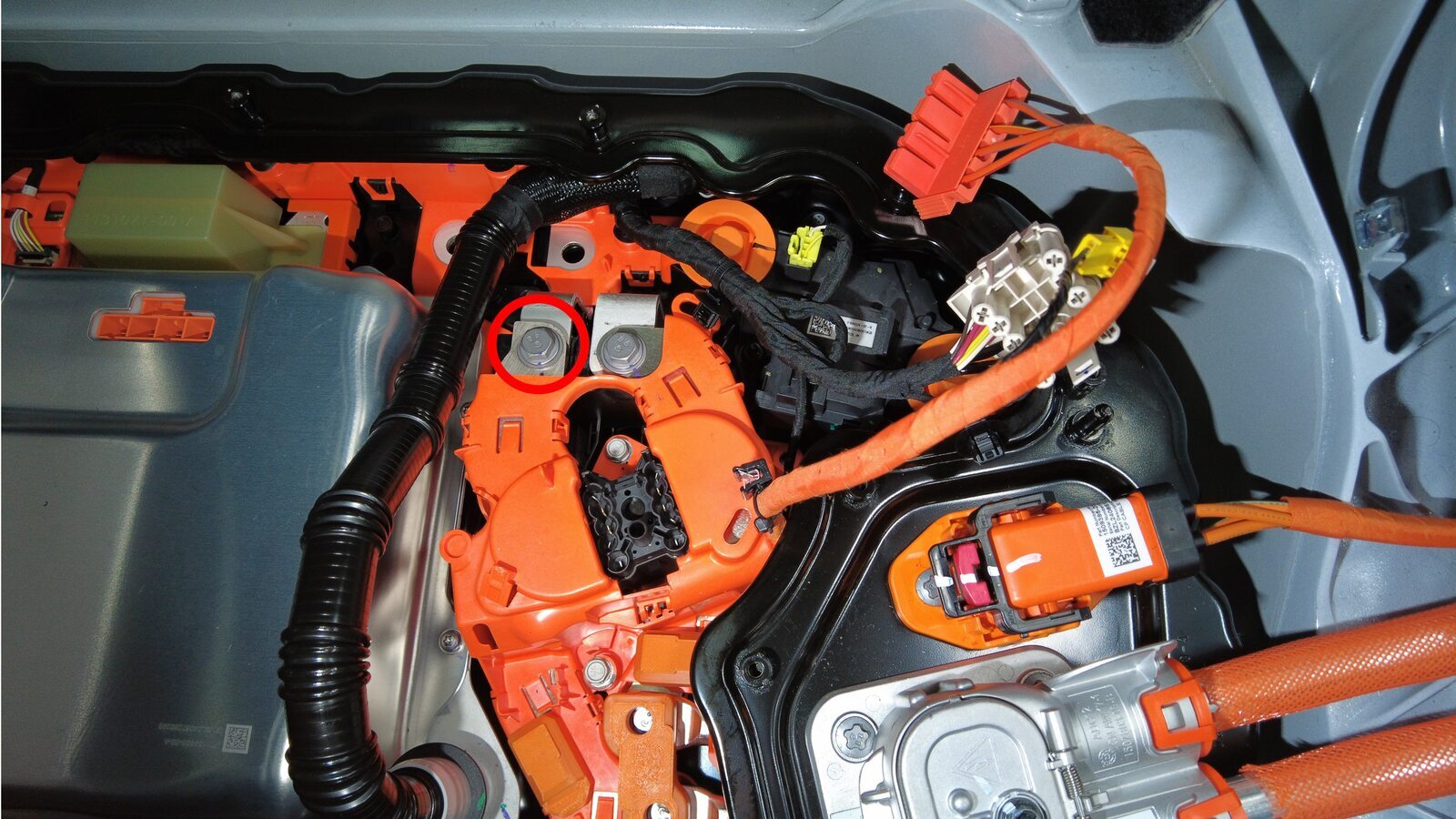 拆下并弃用将直流输入母排总成固定到高压电池仓的螺栓。