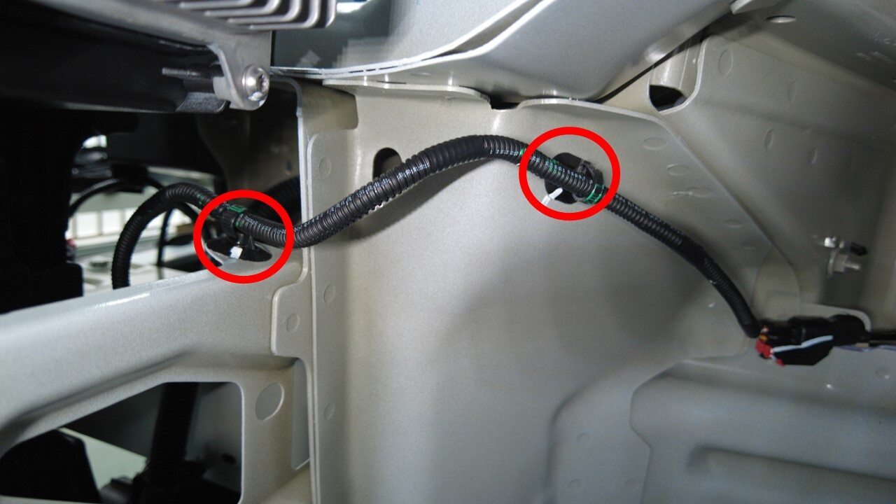 安装将左前轮毂转速传感器线束固定到车身的夹子(2 个)。