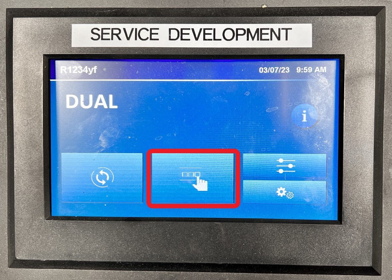 - 在触摸屏上,点击维护模式下的 "wrench"(位于触摸屏 UI 界面底部),再点击,然后等待例行程序完成。