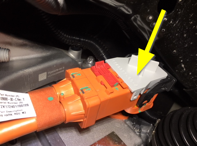 Trennen Sie das HV-Kabel der hinteren Antriebseinheit von der hinteren Antriebseinheit.