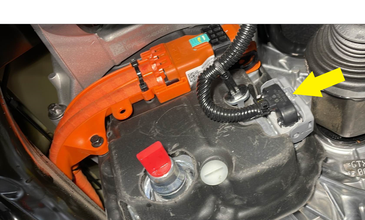 - Entfernen Sie das HV-Kabel für die hintere Antriebseinheit aus dem Bereich zwischen dem Hilfsrahmen und der Antriebseinheit.