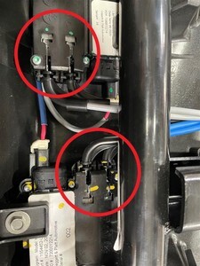 Note1x connector, 1x clip, Plug in connector and install trim by hooking the front into place and seat clip at rear of trim.