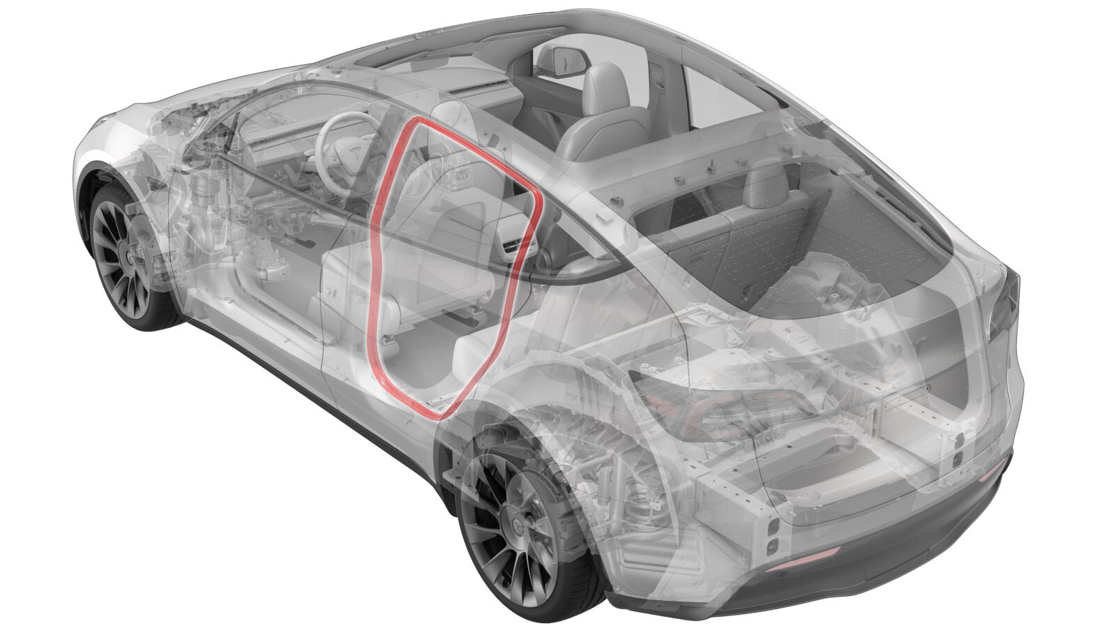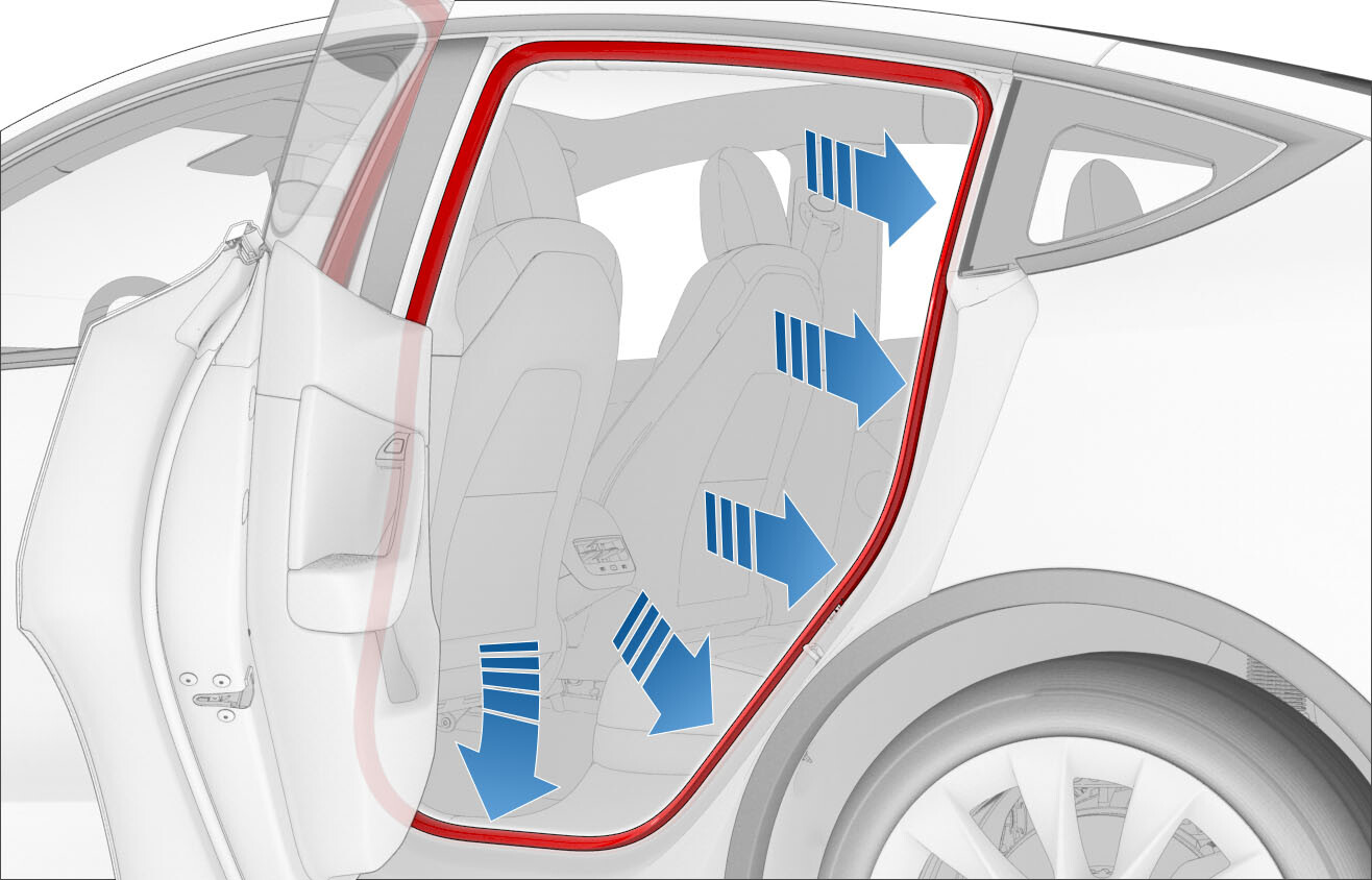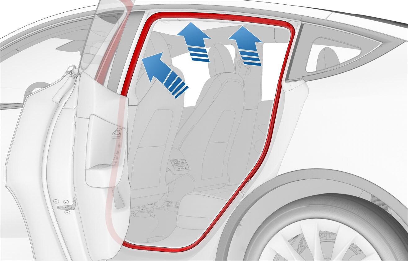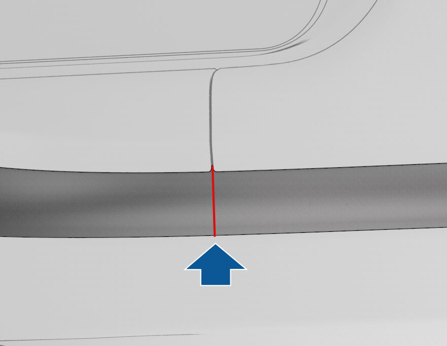 Figure 1. For vehicles built by Fremont and Austin, make sure the seam on the seal is even with the LH upper B-pillar. Figure 2. For vehicles built by Shanghai, make sure the seam on the seal is even with the bottom of the LH lower B-pillar. -