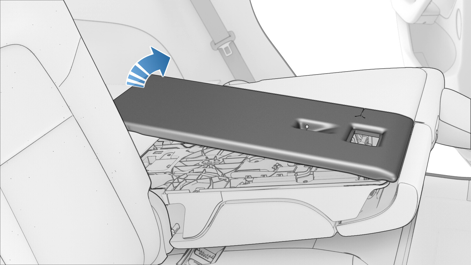 - Remove the center 2nd row backrest switch. See Backrest Switch – Seat Back – 2nd Row – Center (Remove and Replace).