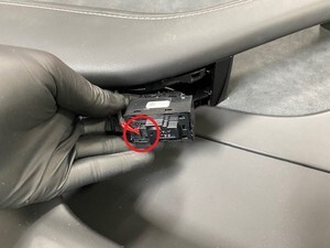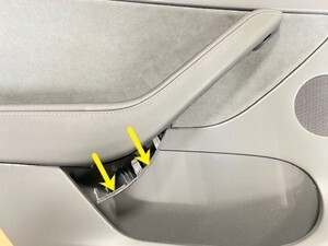 attaches the screw cover to the middle of the LH rear door armrest, and then