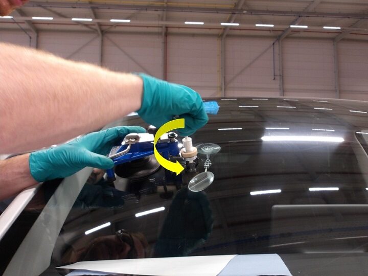 NoteApply a thin layer of gel to the suction cup of the Bridge, and then place the Bridge on the outside of the windshield so that the injector head is positioned exactly over the repair area (impact point) and vertically to the windshield.