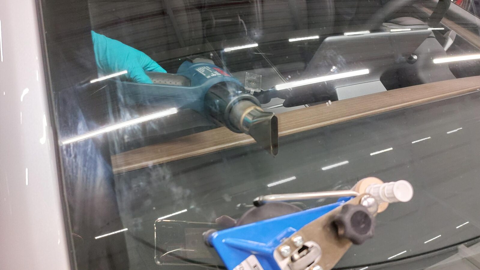 NoteSet heat gun to 100°C, gently heat from the inside to decrease the viscosity of the resin. Heat up cycle of 10 seconds followed by a cooldown cycle of 10 sec.CAUTIONOverheating can lead to stress cracks in the wind shield.