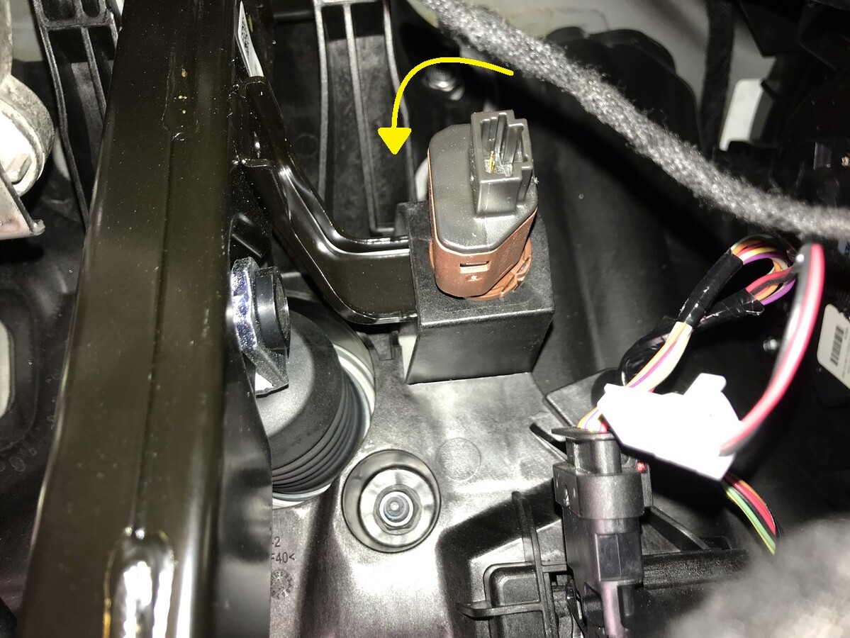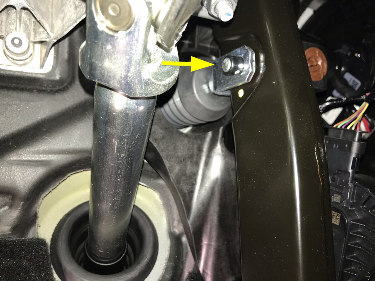 Align the brake pedal to the iBooster rod, and then install the clevis pin to the brake pedal assembly.