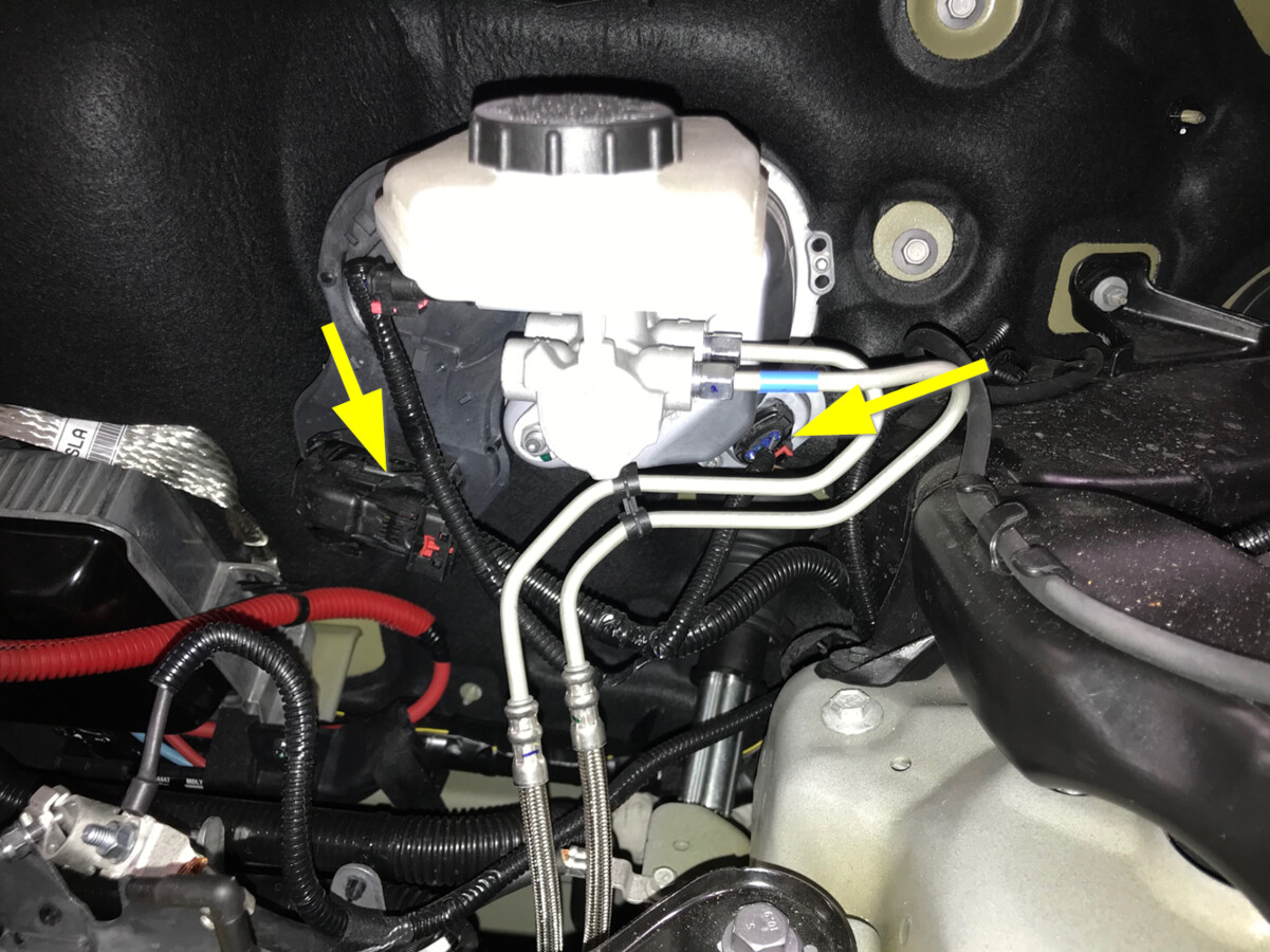 Release the locking tab, and then disconnect the brake fluid reservoir electrical connector.