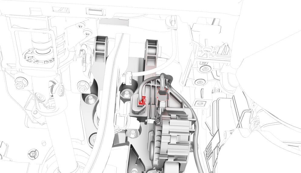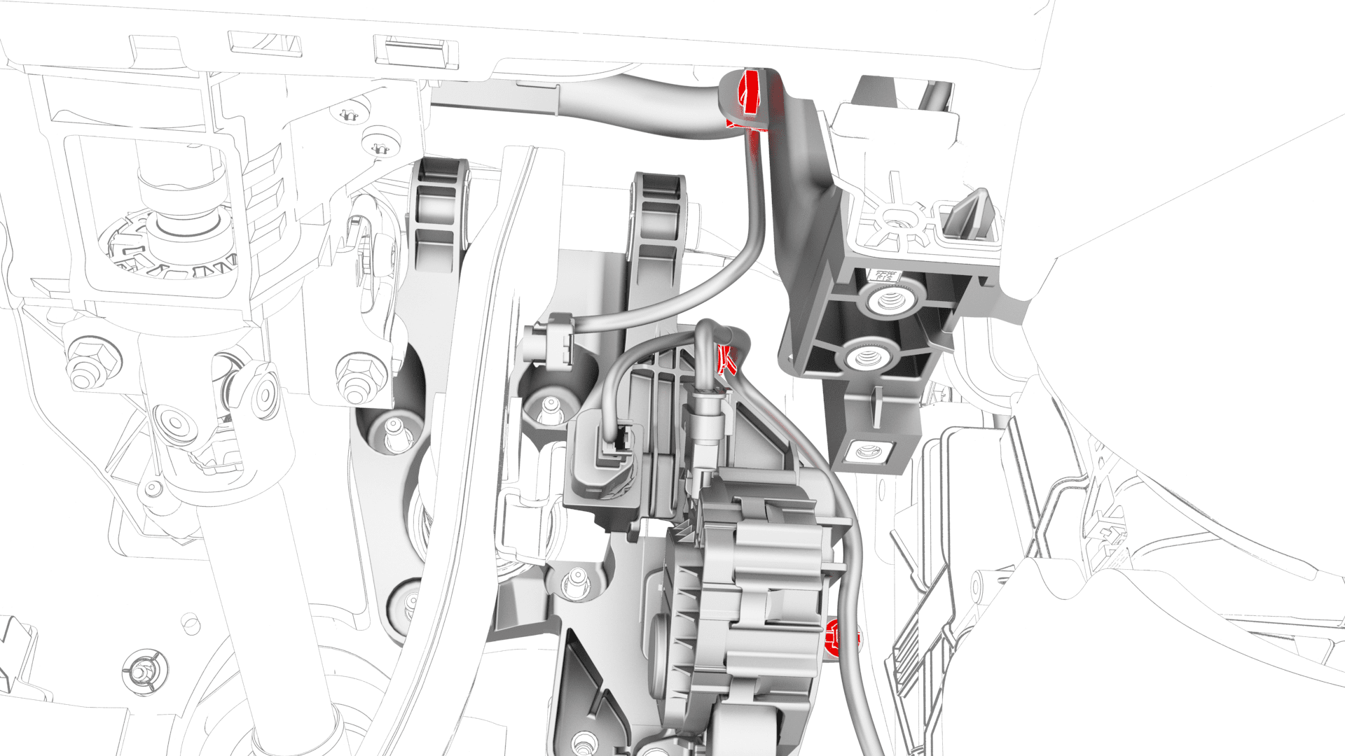 Release the clips that attach the electrical harness to the brake pedal assembly.