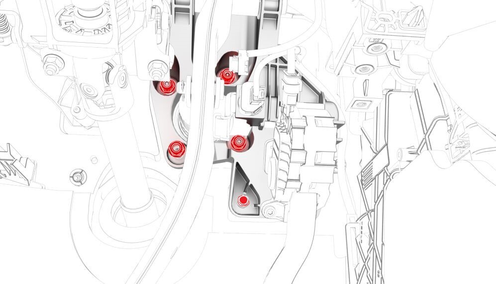 - Install the brake pedal assembly onto the studs (x4) of the body.