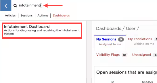 Dashboards tab, type "Infotainment" into the search field,
