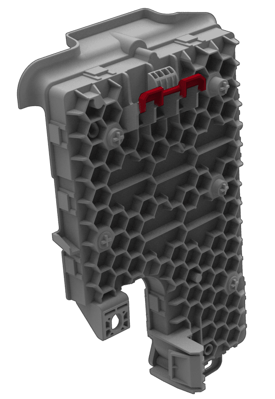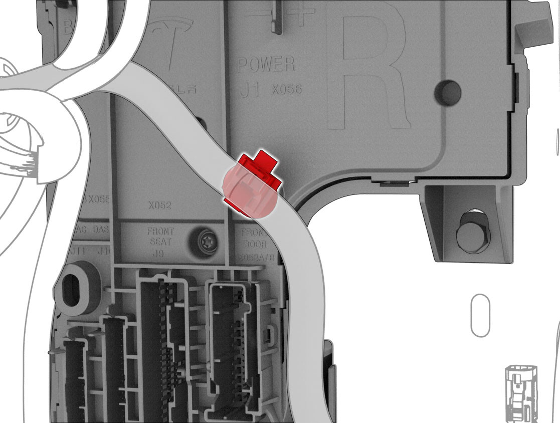 Install the clip that attaches the DCDC cable to the RH body controller module.
