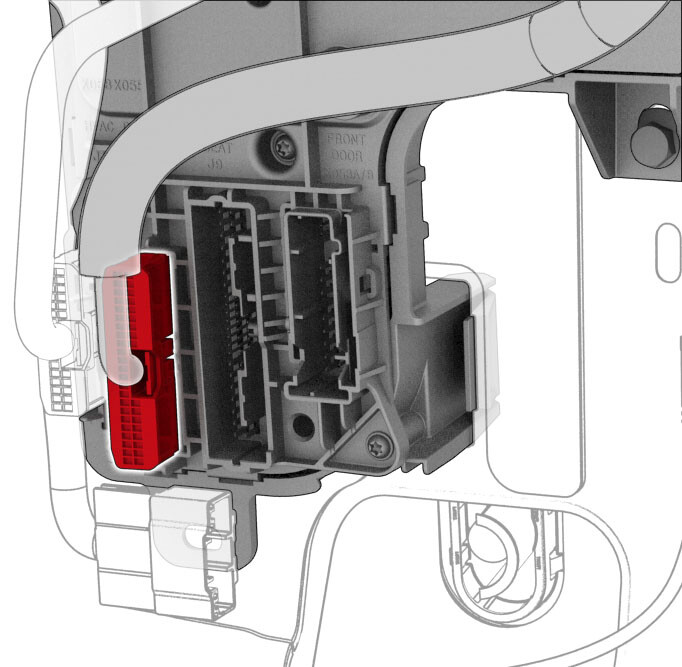 Release the connector lock, and then disconnect the J7 door electrical connector from the RH body controller module.
