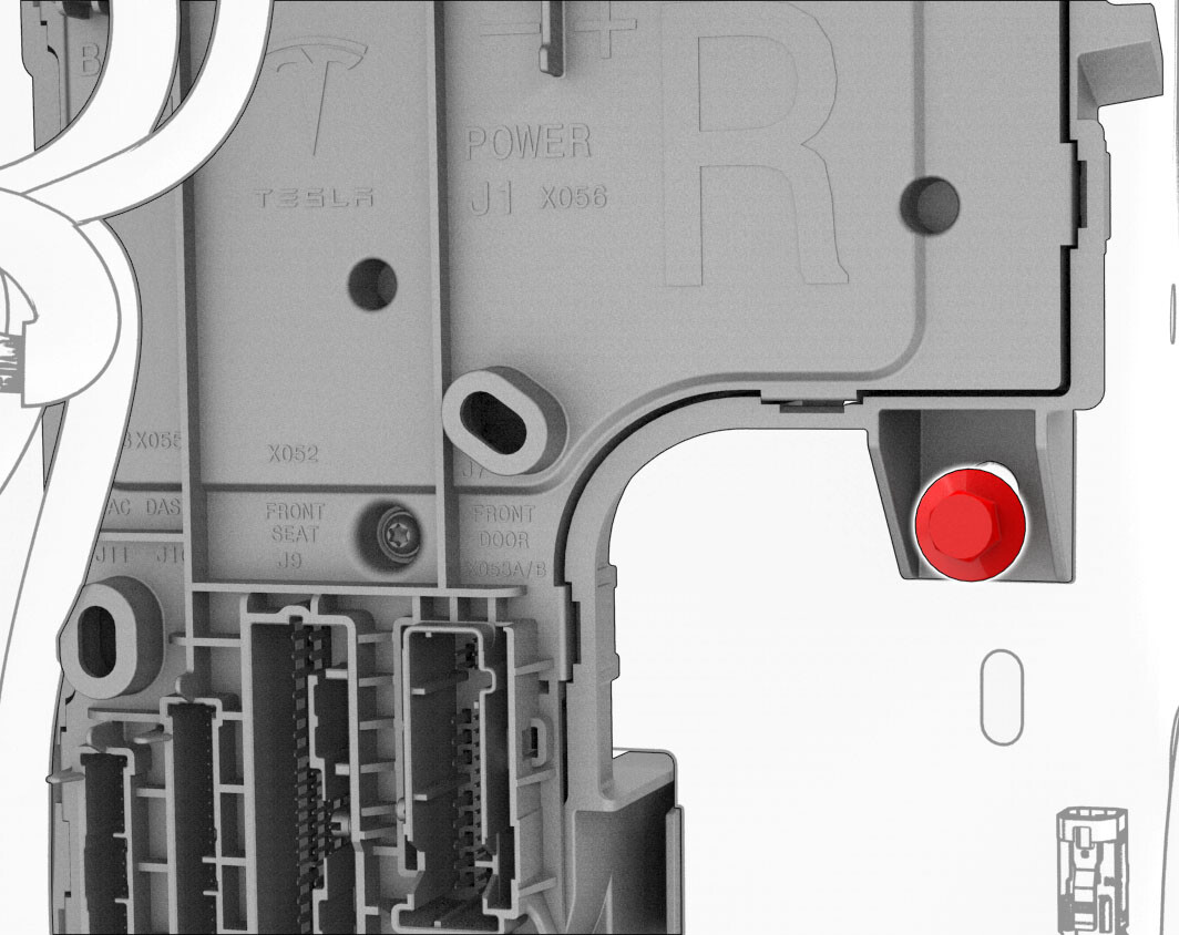 Remove the bolt that attaches the RH body controller module to the vehicle.