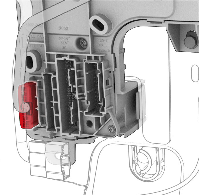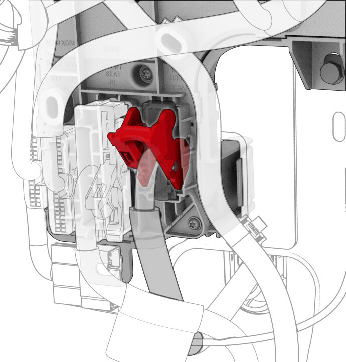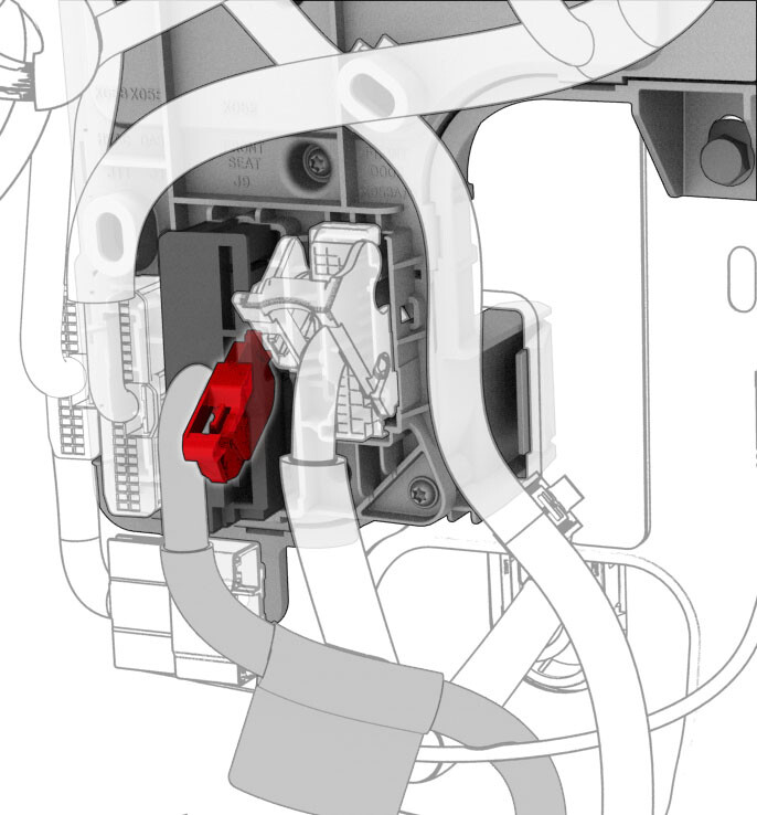 Release the connector lock, and then disconnect the J9 front passenger seat electrical connector from the RH body controller module.