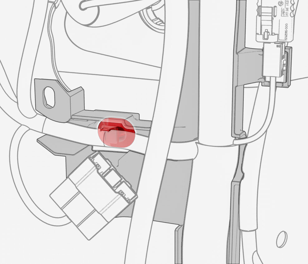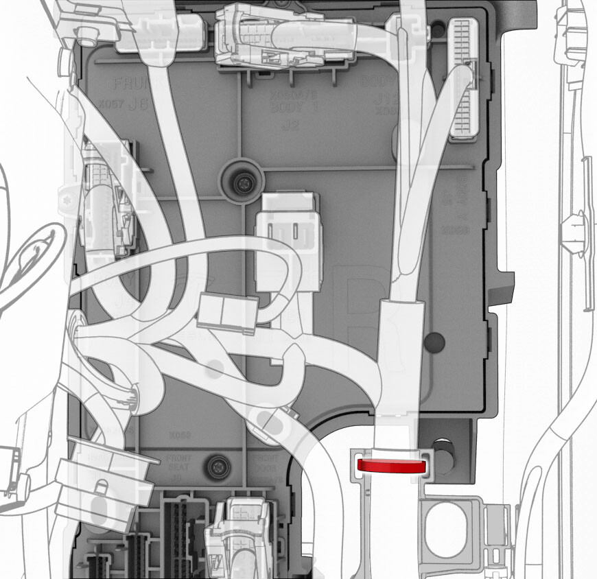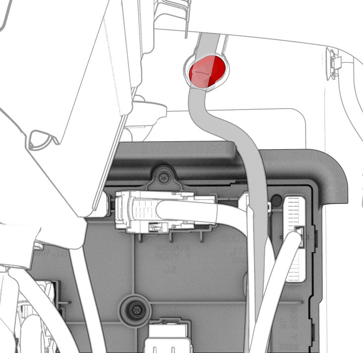 Release the clips (x2) that attach the RH body harness to the RH body controller module area.