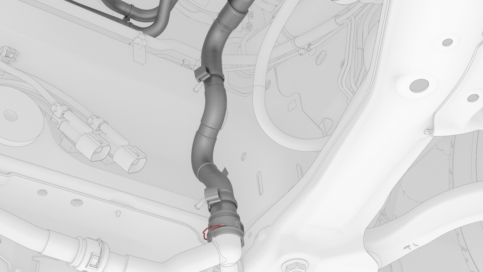 Release the clip that connects the LH car computer coolant hose to the car computer coolant port, and then disconnect the hose.