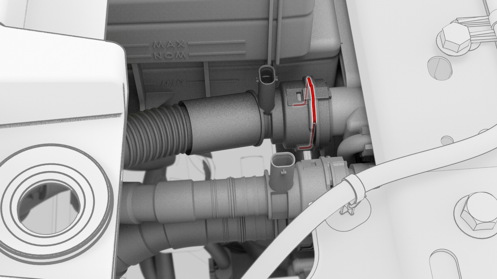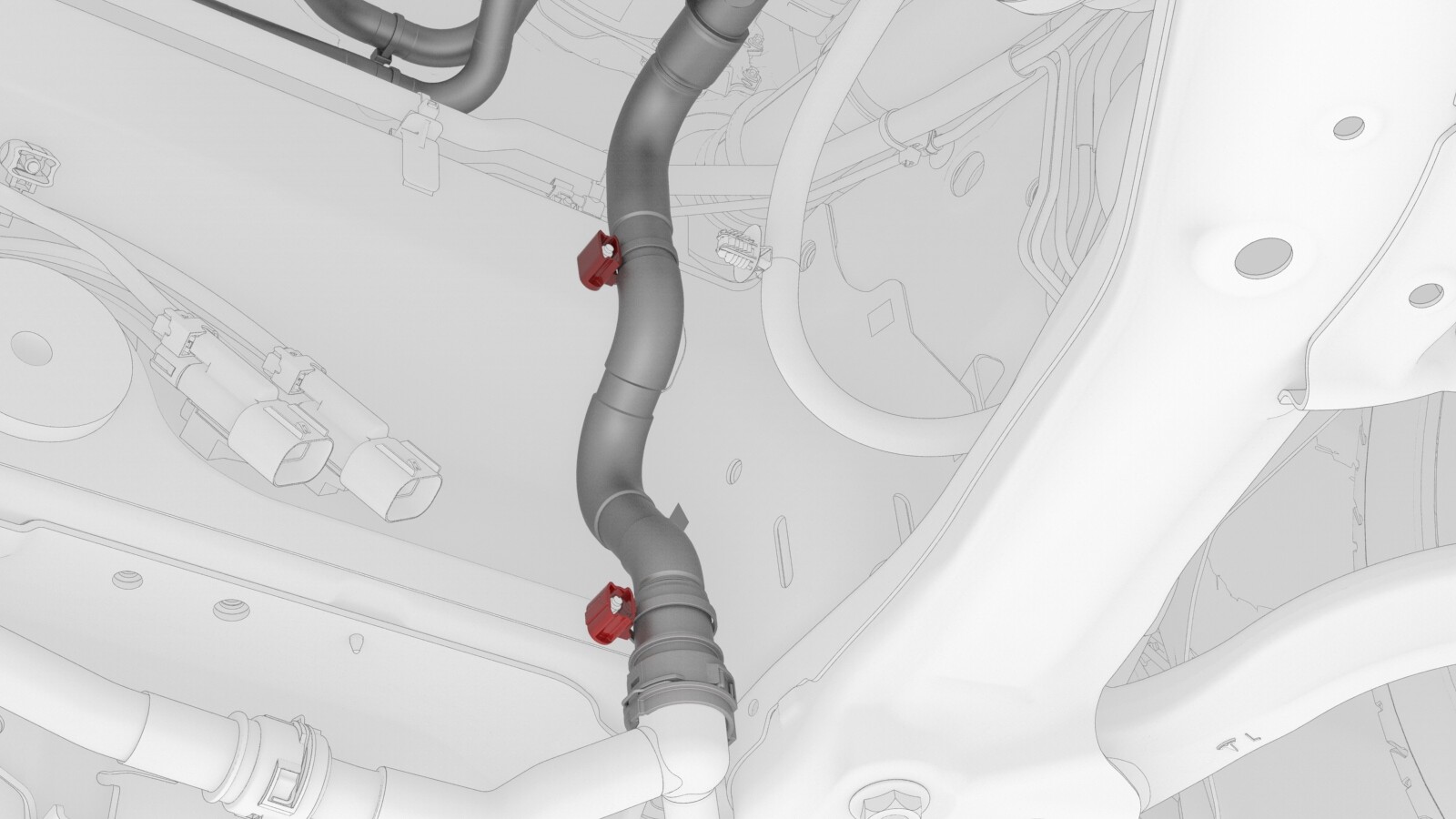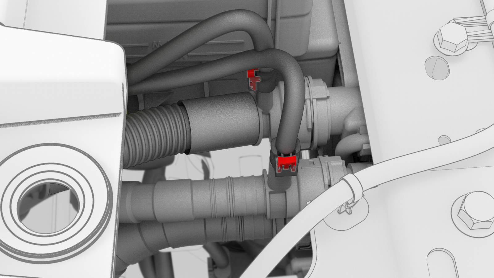 Release the clip that connects the RH car computer coolant hose to the car computer coolant port, and then disconnect the hose.