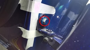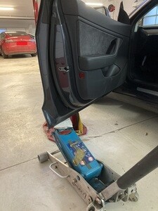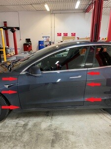 - Remove the masking tape that surrounds the LH front door lower hinge on the body and door.