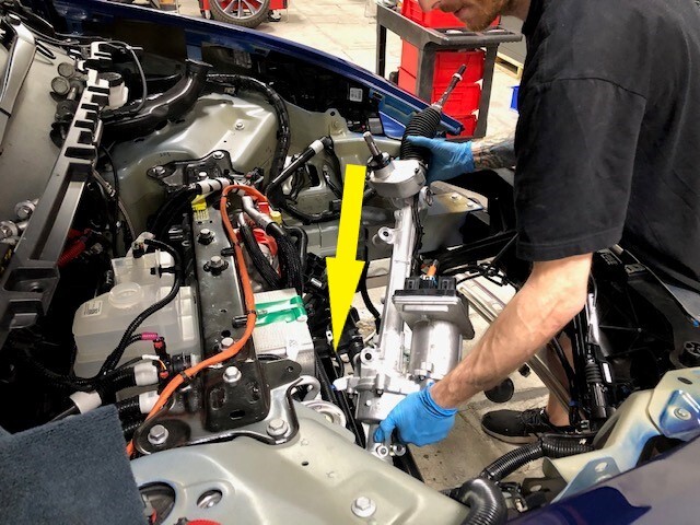 | Bolt that attaches the steering gear assembly to the electric steering column |