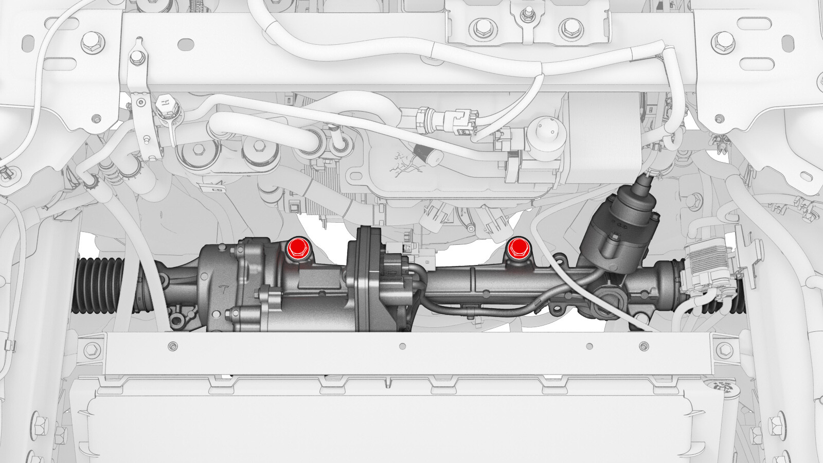 | Inner bolts that attach the steering gear assembly to the front subframe |
