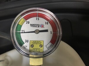 Monitor gauge for 30 seconds to verify a vacuum is maintained in the cooling system