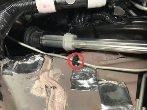 Shift shock tower brace assembly to gain clearance for removal of battery bracket
