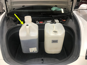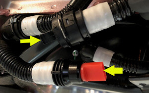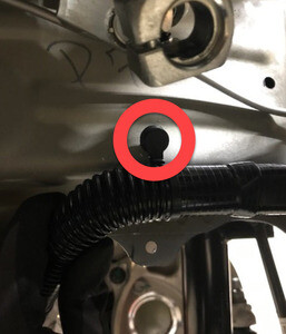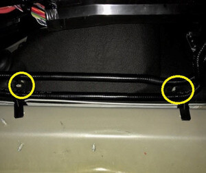 Note5x bolts, 10mm, 5 Nm, Newer vehicles may be equipped with 1x push clip securing frunk to reservoir neck