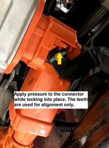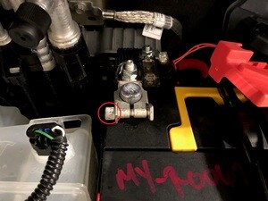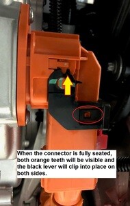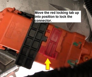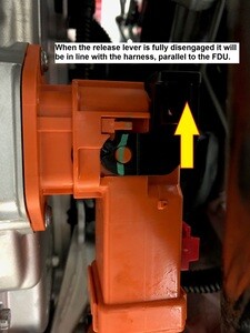 Note1x nut, 10mm, 6 Nm, 1x connector, Engage locking tab, Connect FRL first before connecting 12V to avoid damage to car computer