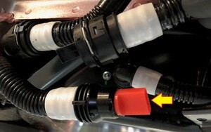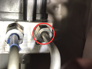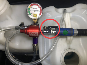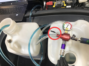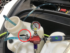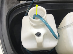 Place coolant refill hose inside filled coolant container and make sure end is fully submerged