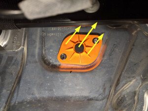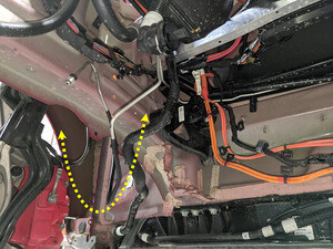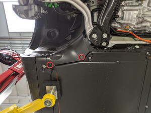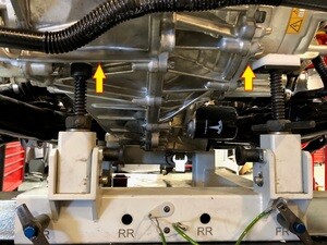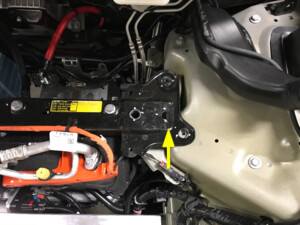 NoteMeasure the ride height 75mm inward of the HV battery ski hole at each corner, If using ballast bags, move the front seats as necessary to achieve ride height spec, See Service Manual for ride height specifications