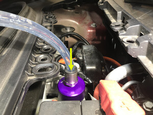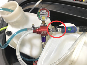 NoteMake sure end of coolant refill hose is fully submerged during entire process