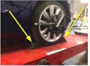 NoteRemove the wheel chocks from the LH rear tire and push the back of the tire to roll vehicle forward. Reinstall wheel chocks once vehicle is in position