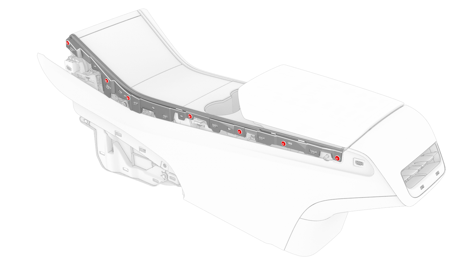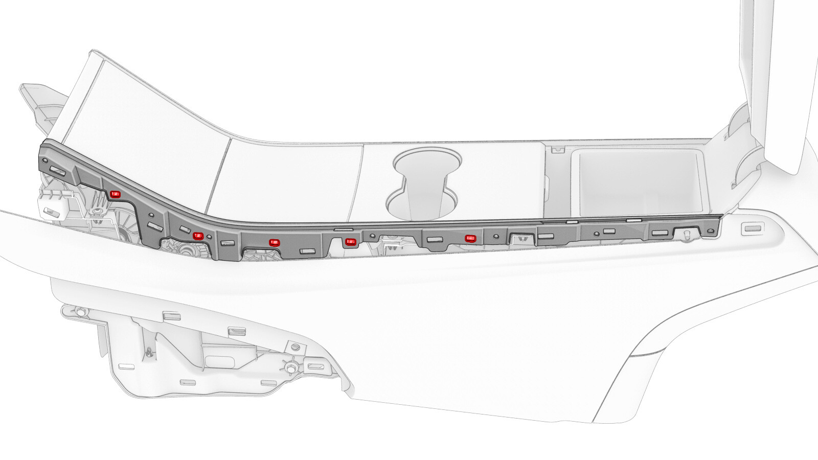 attach the LH center console bright strip to the center console.