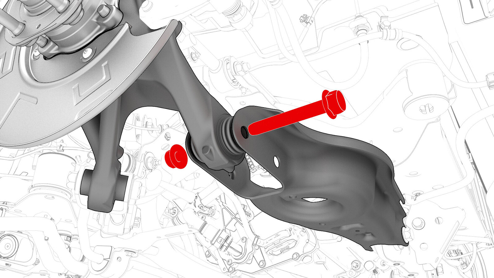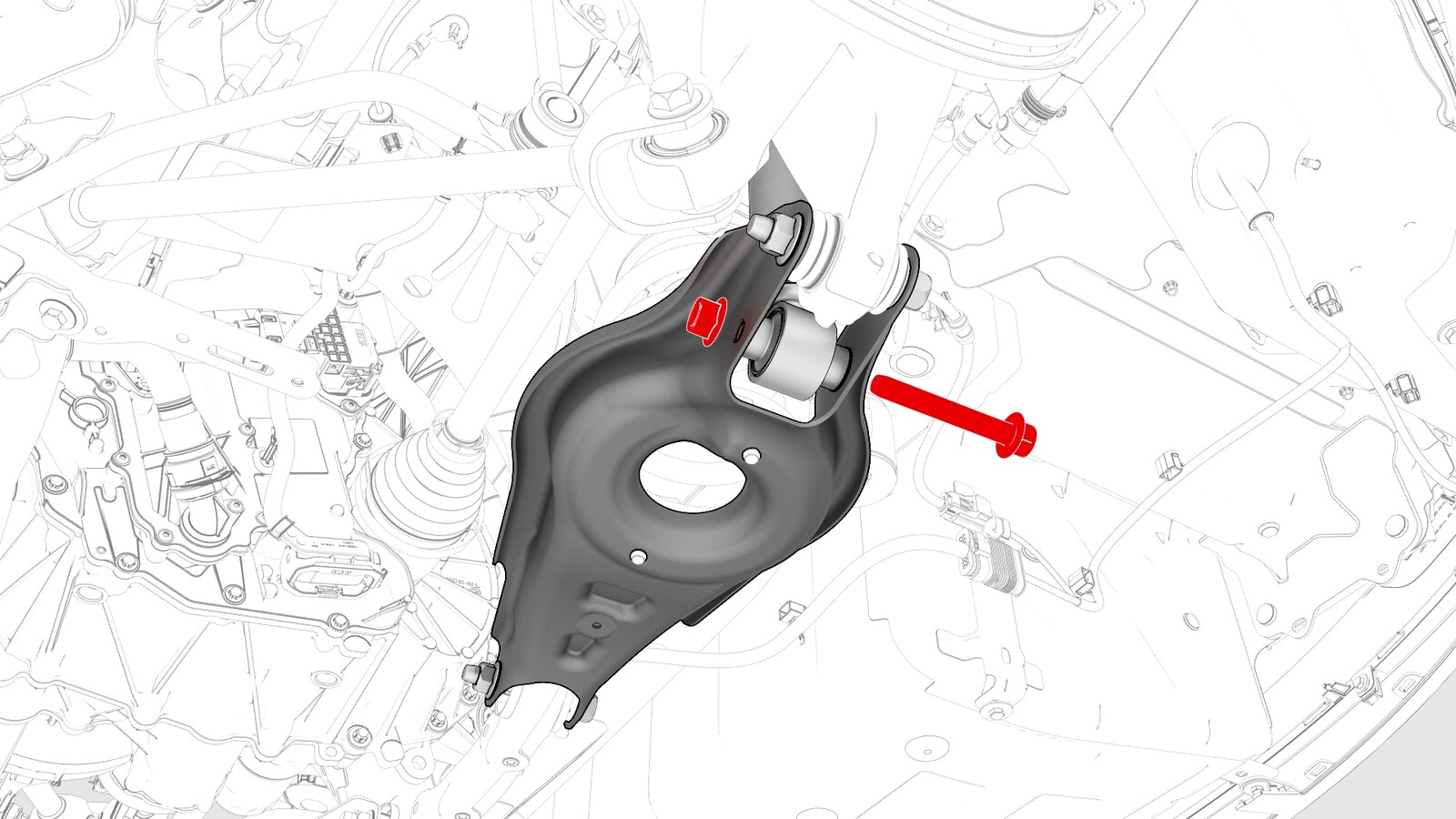 attaches the LH rear lower aft link to the subframe. Mark the bolt with a