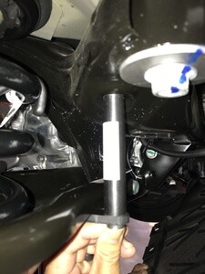 NoteThe suspension is at the simulated ride height when the top of the tool touches the subframe and the lower part of the tool interfaces with the lower control arm.TIpUse of the following tool(s) is recommended: