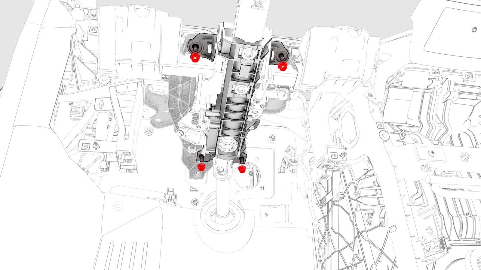 20. Remove the nuts (x4) that attach the steering column to the cross car beam.