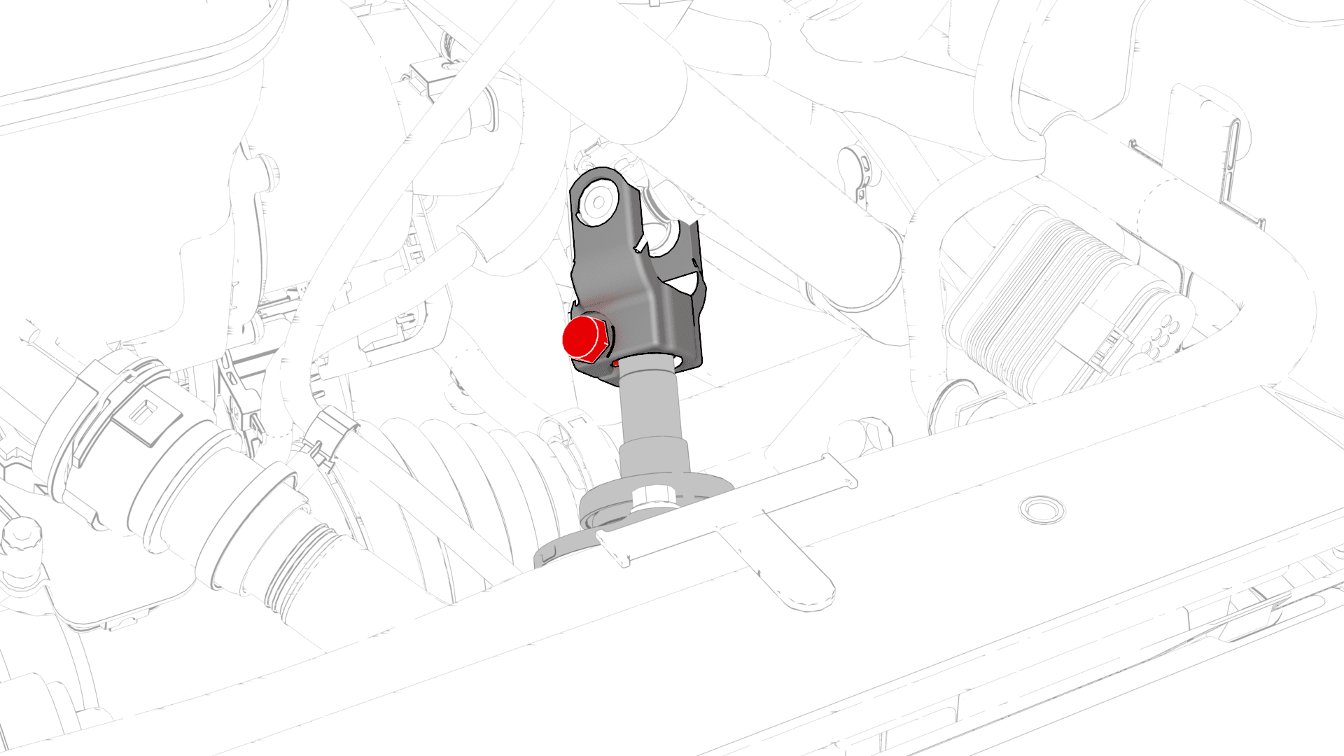 9. Remove the bolt that attaches the intermediate shaft to the steering rack assembly, and then slide the intermediate shaft upwards to remove it from the steering rack.