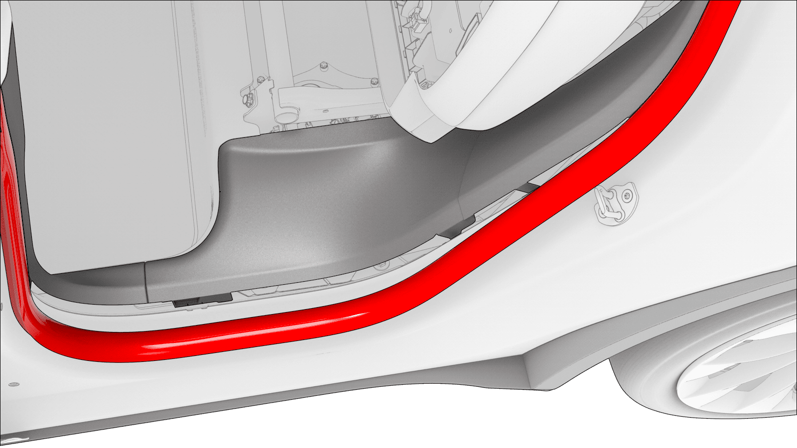 LH rear door seal that overlaps the LH lower c-pillar trim.