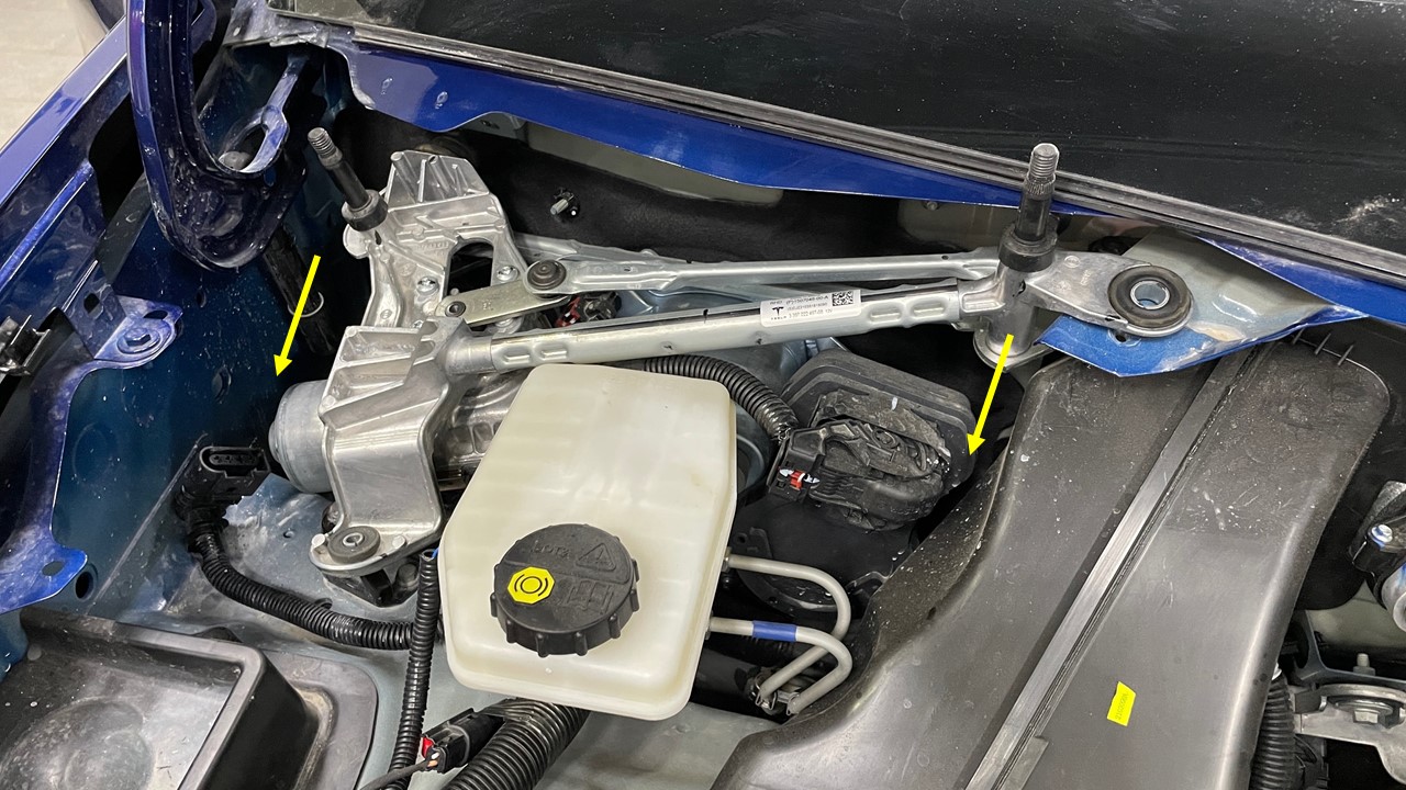 Carefully pull the wiper module towards the front of the vehicle to release the rubber anchor from the bracket on the bulkhead.