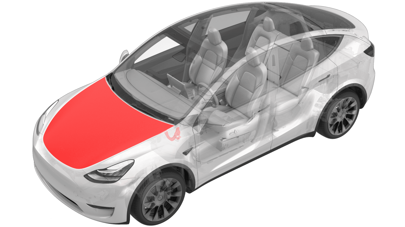 paint matching the vehicle's body color to the LH and RH hood hinge