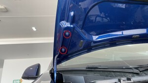 - Clean the LH and RH hood hinge bolts and the surrounding area with isopropyl alcohol (IPA), and then let dry for at least 1 minute.