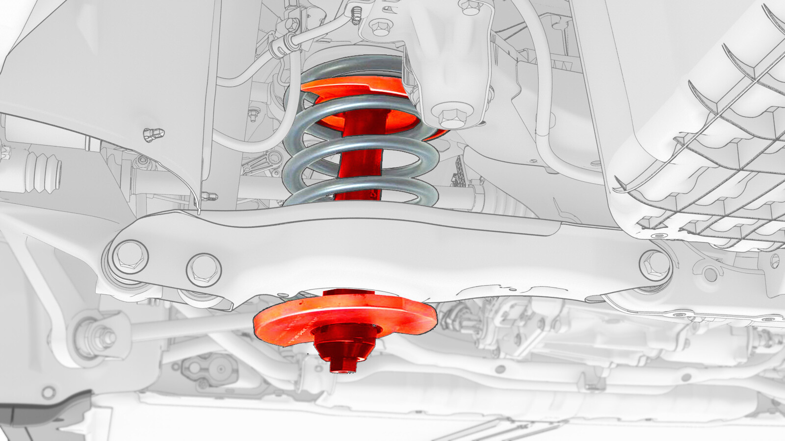 - Remove the spring compressor from the LH rear suspension coil spring.