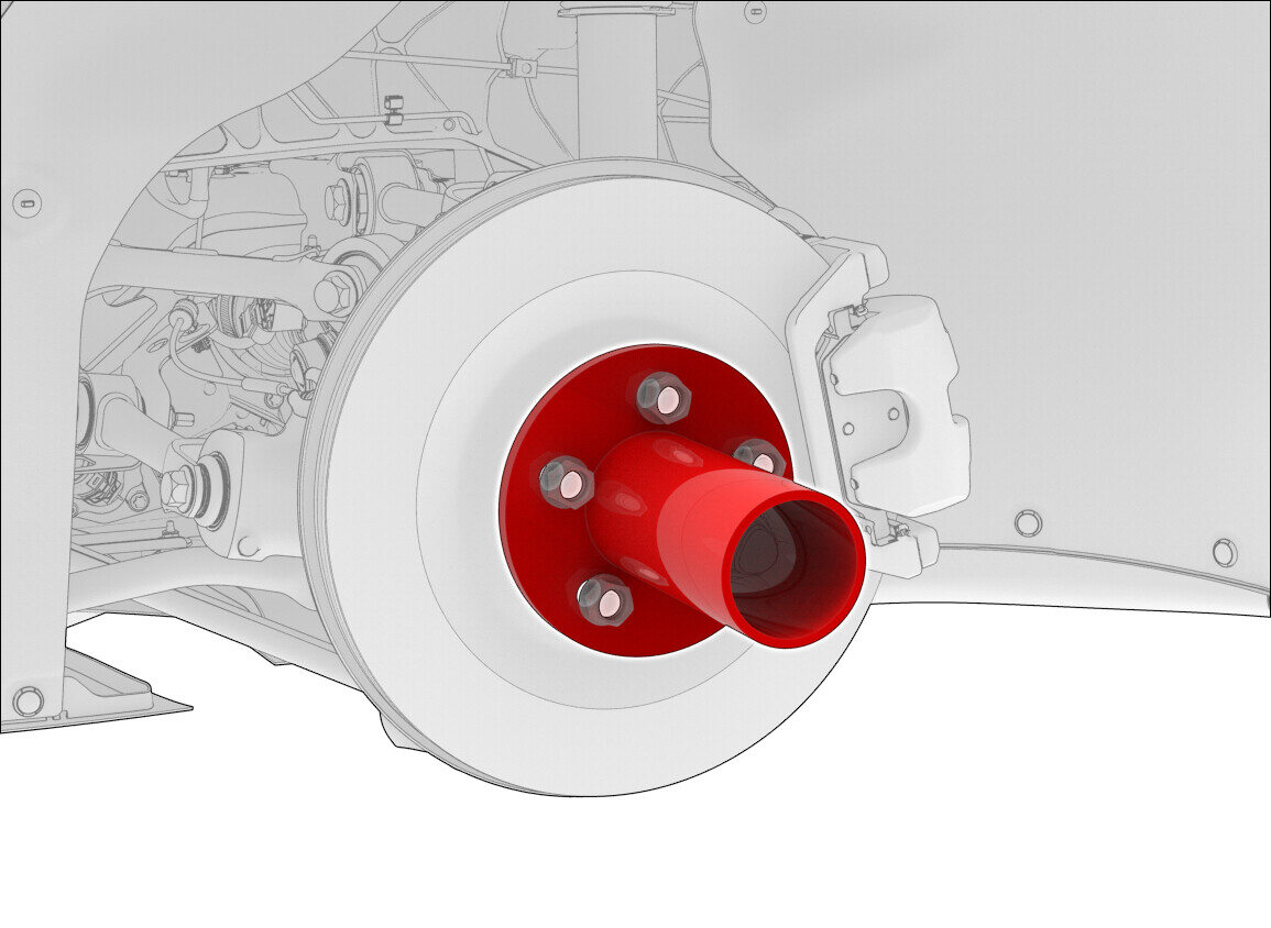 Install the hub jack adapter onto the LH rear hub and hand-tighten the lug