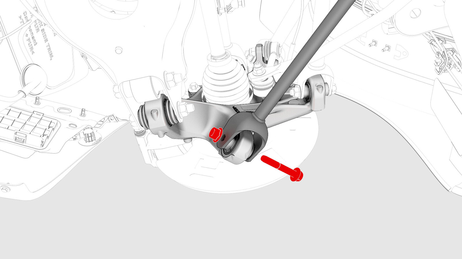 Remove the bolt that attaches the LH rear lower fore link to the subframe.