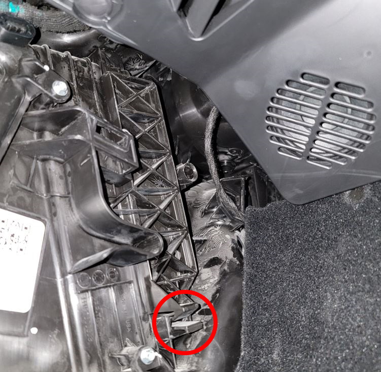 - Use the clip tool to remove tabs Release RH footwell assembly from IP.